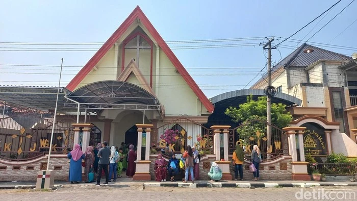 Sedangkan bangunan gereja berada di sebelah timur masjid dan hanya dipisahkan oleh lapangan desa dengan jarak hanya sekitar 50 meter menghadap masjid.