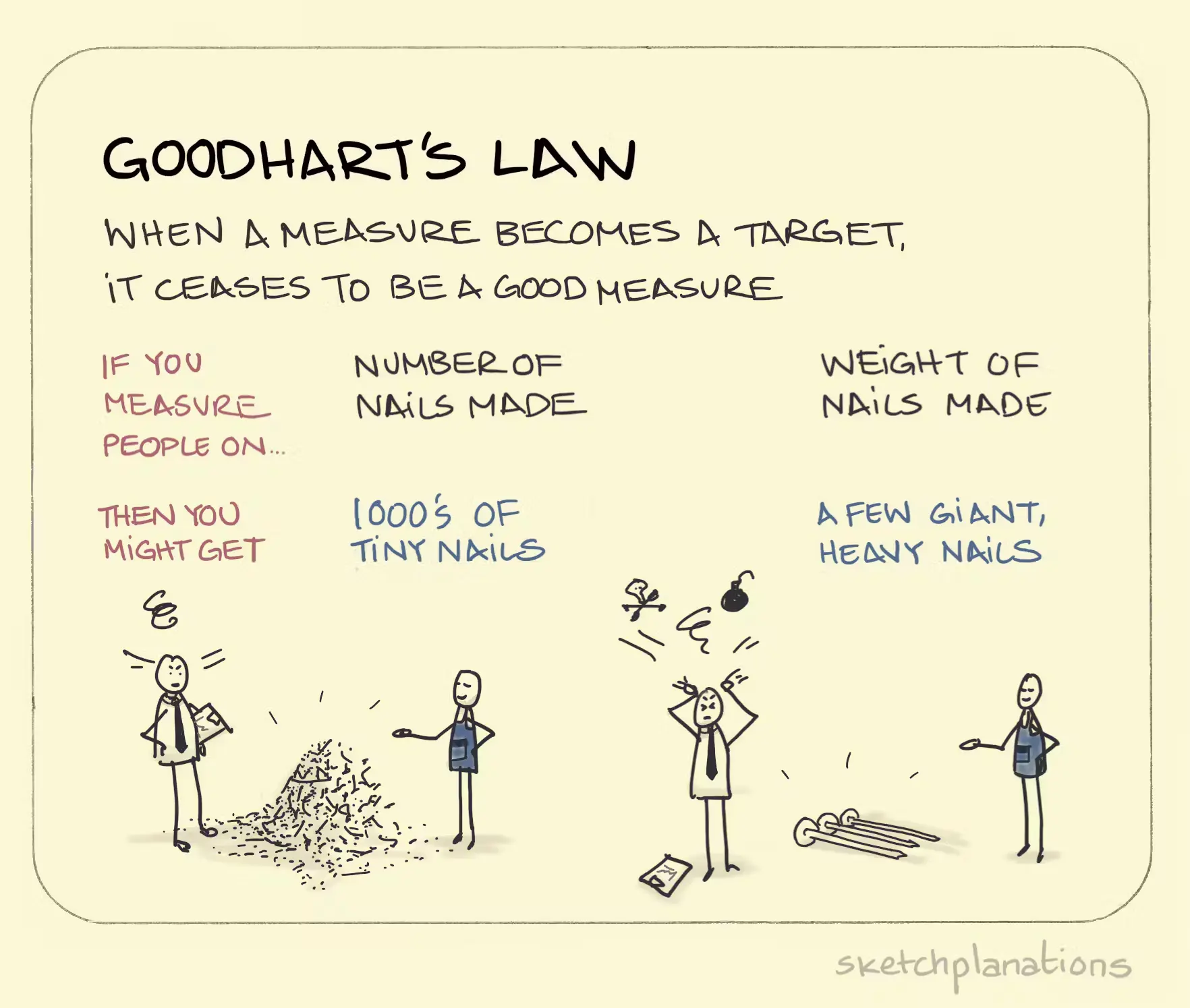 Goodhart’s Law adalah konsep yang berasal dari bidang ekonomi dan statistik yang menyatakan bahwa “ketika sebuah metrik menjadi target, maka metrik tersebut kehilangan validitasnya sebagai alat ukur.”